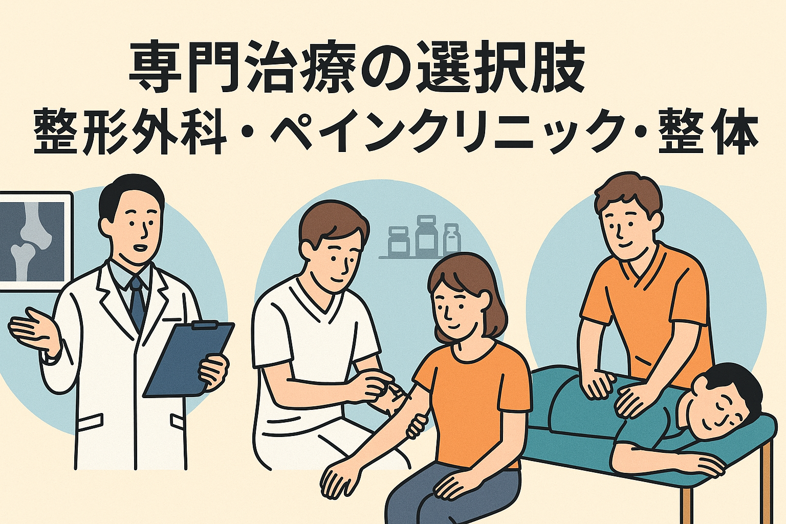 専門治療の選択肢|整形外科・ペインクリニック・整体の比較