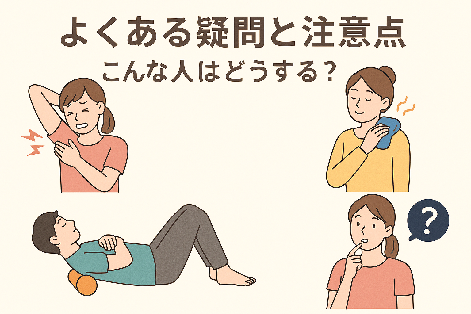 「肩甲骨ストレッチ、やってみたいけど…ちょっと不安」という声もよく聞きます。ここでは、よくある疑問とその対処の考え方を整理します。