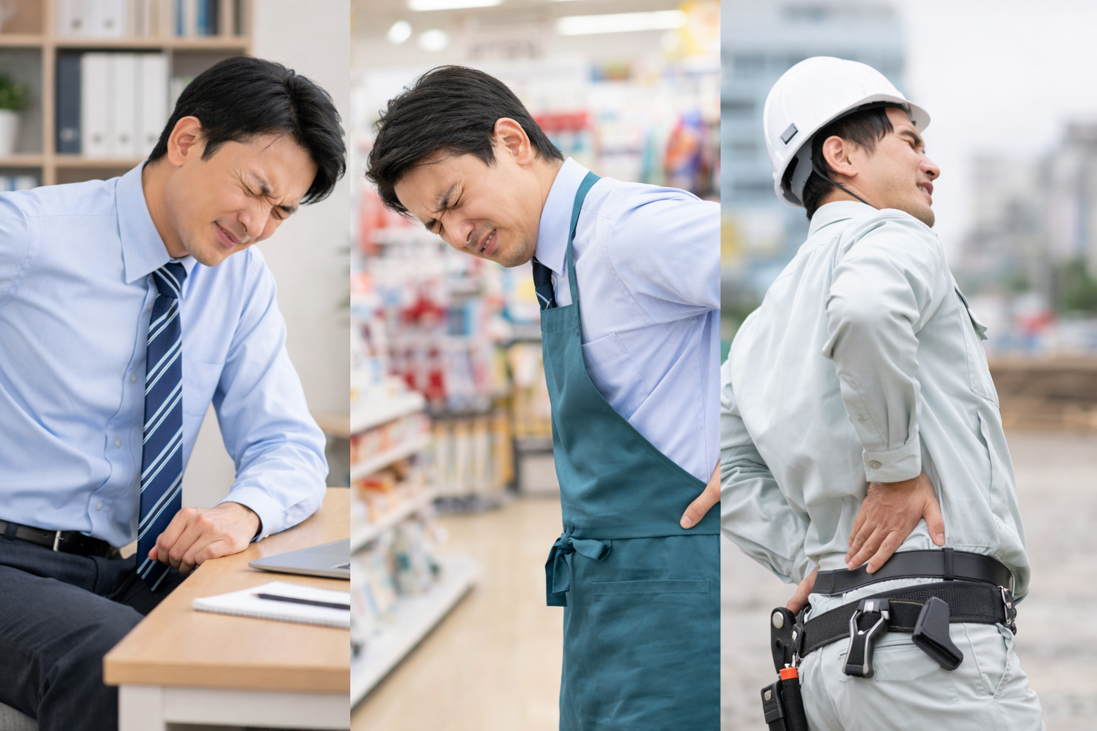 同じ腰痛でも、仕事の内容で体への負担はまったく違います。