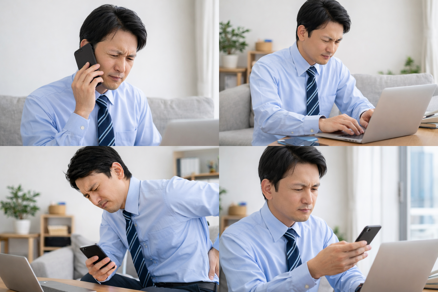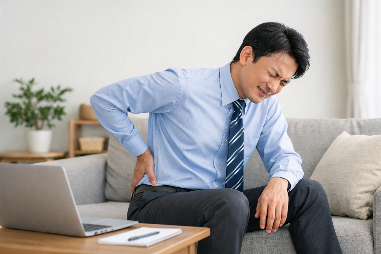 「座っているだけなら大丈夫?」と思われがちですが、長時間同じ姿勢は腰に負担がかかると言われています。軽症なら数日休んで在宅勤務や時短に切り替える選択肢もあるようです。