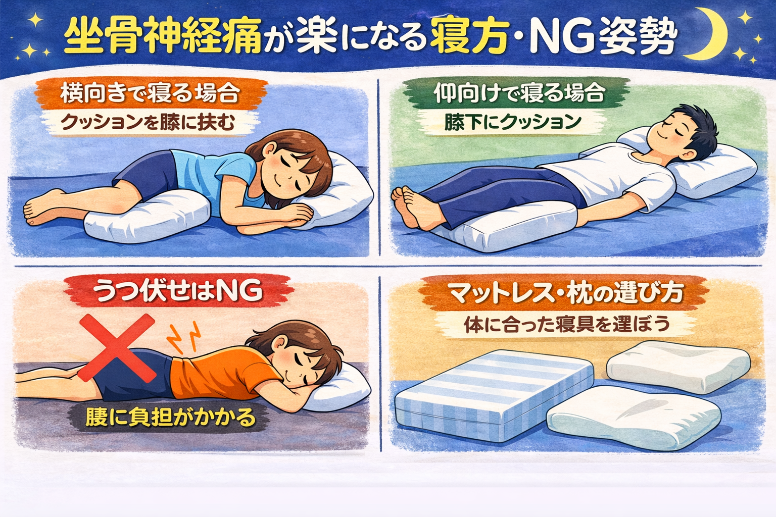 #坐骨神経痛寝方 #腰痛姿勢改善 #ヘルニア対策 #寝具選び #痛み軽減