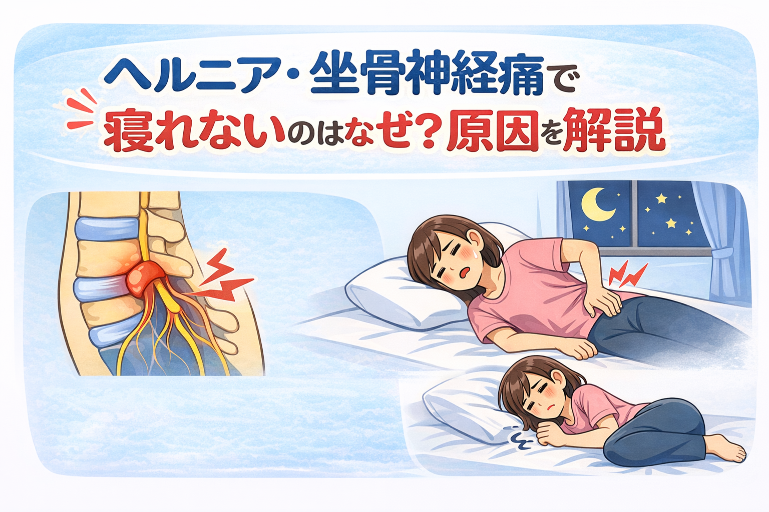 ヘルニア・坐骨神経痛で寝れないのはなぜ?原因を解説