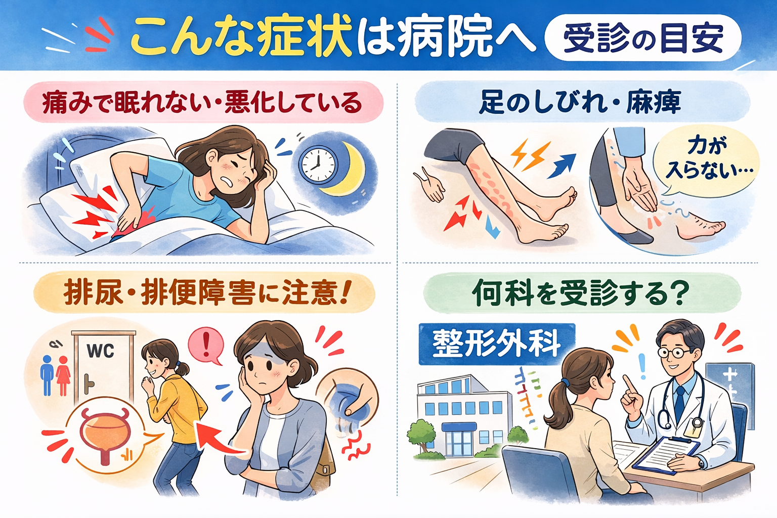 #坐骨神経痛注意 #ヘルニア症状 #来院の目安 #しびれ危険サイン #整形外科