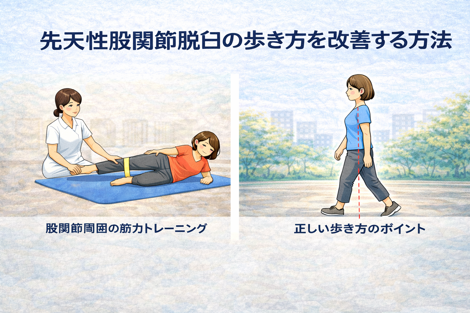 先天性股関節脱臼(発育性股関節形成不全)がある場合、「歩き方は改善できるのだろうか?」と気になる方も多いのではないでしょうか。