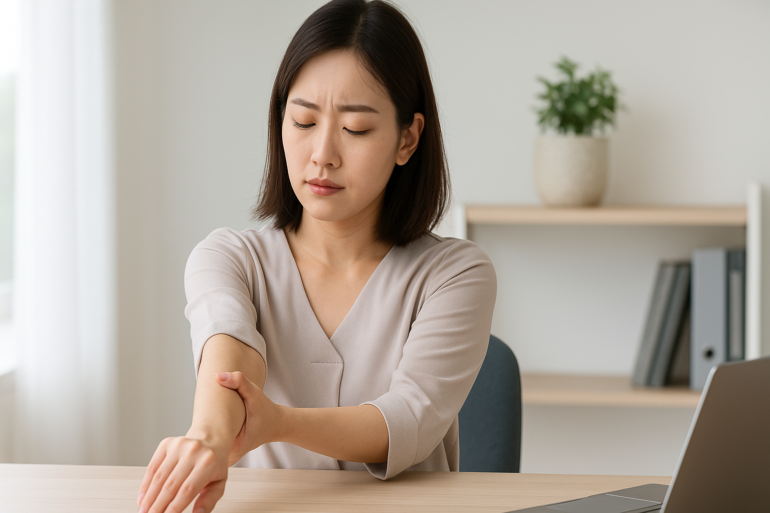 「肘から手首のあいだがじんわり痛い」「重いものを持つとピリッとする」——そんな違和感を感じたことはありませんか?