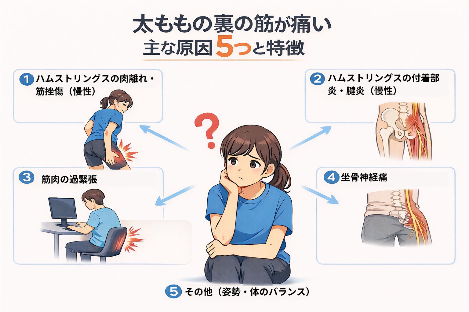 「太ももの裏の筋が痛いけど、これって何が原因なんだろう?」