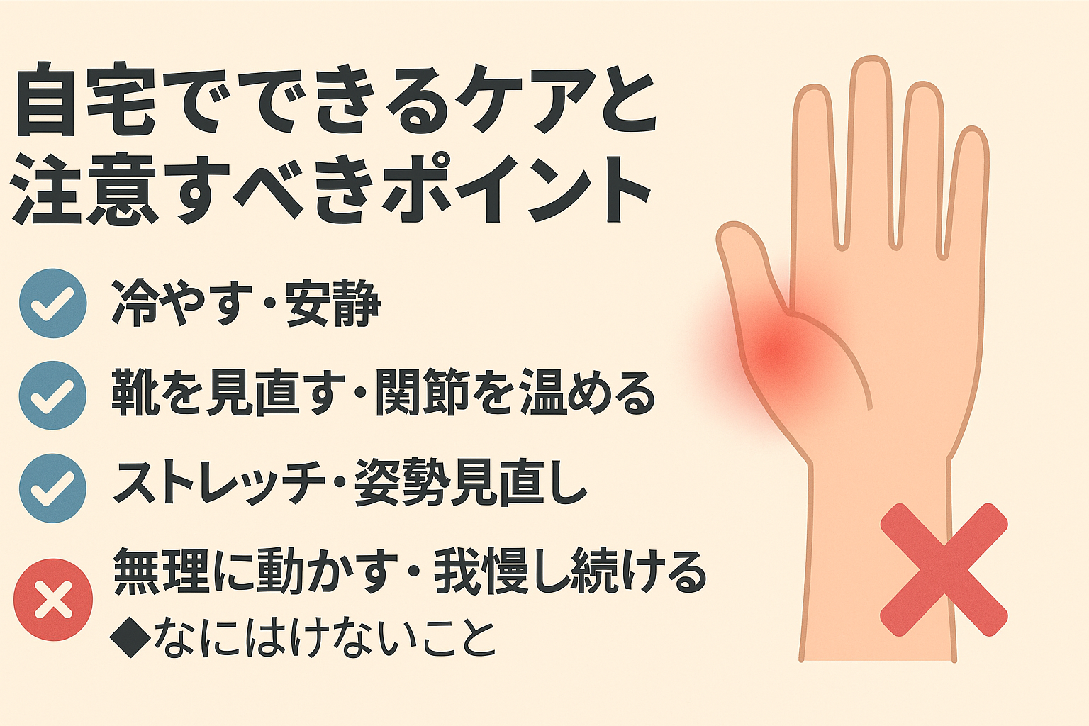 また、入浴後の軽いマッサージで血流を促すのも有効です。さらに「曲げづらい」「腫れっぽい」などの小さな変化を早めにメモしておくと、再発防止につながると言われています(引用元:okuno-y-clinic.com)。