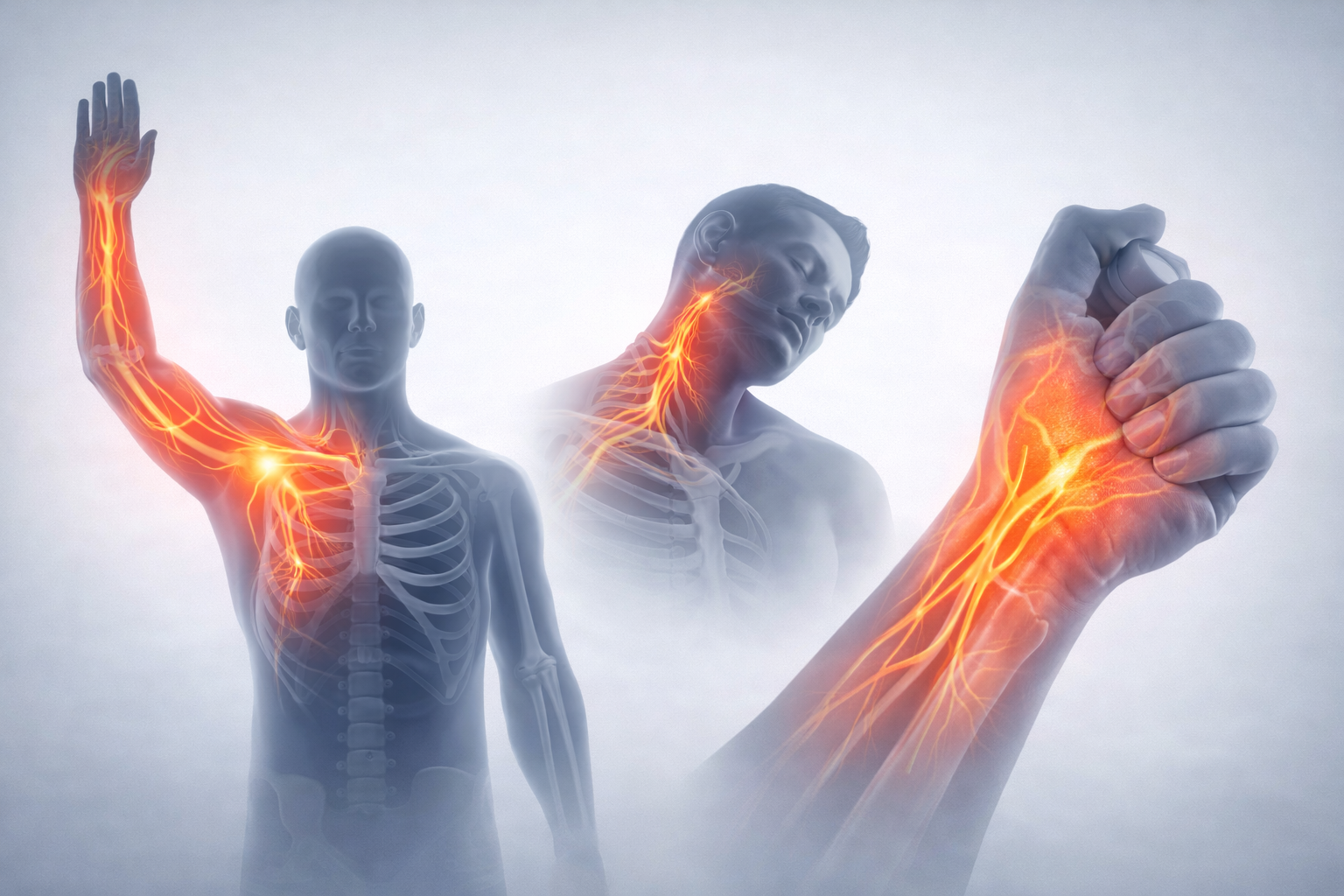 腕全体に広がるしびれ:神経圧迫の可能性あり