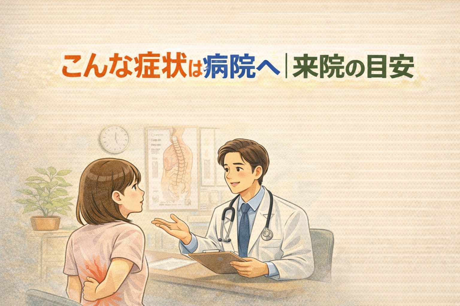 背中の痛みは「様子を見る」と「早めに相談する」のバランスが大切とされています。
