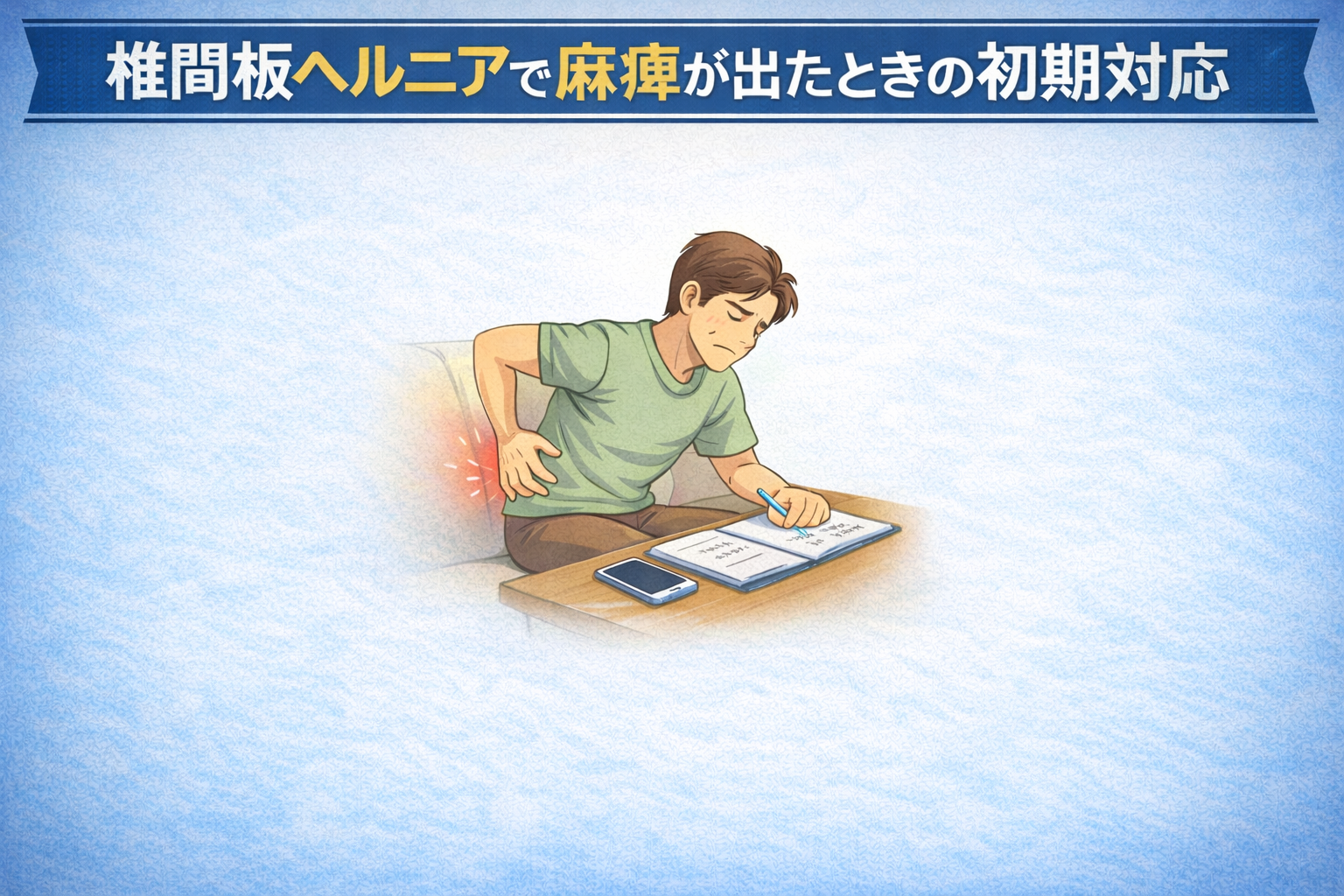 「足がしびれる…これって放っておいていいの?」と不安になる方は少なくありません。椎間板ヘルニアによる麻痺が疑われるときは、まず症状を記録することが大切だと言われています。