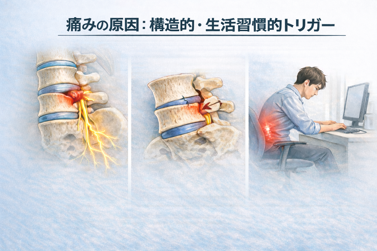 痛みの原因:構造的・生活習慣的トリガー