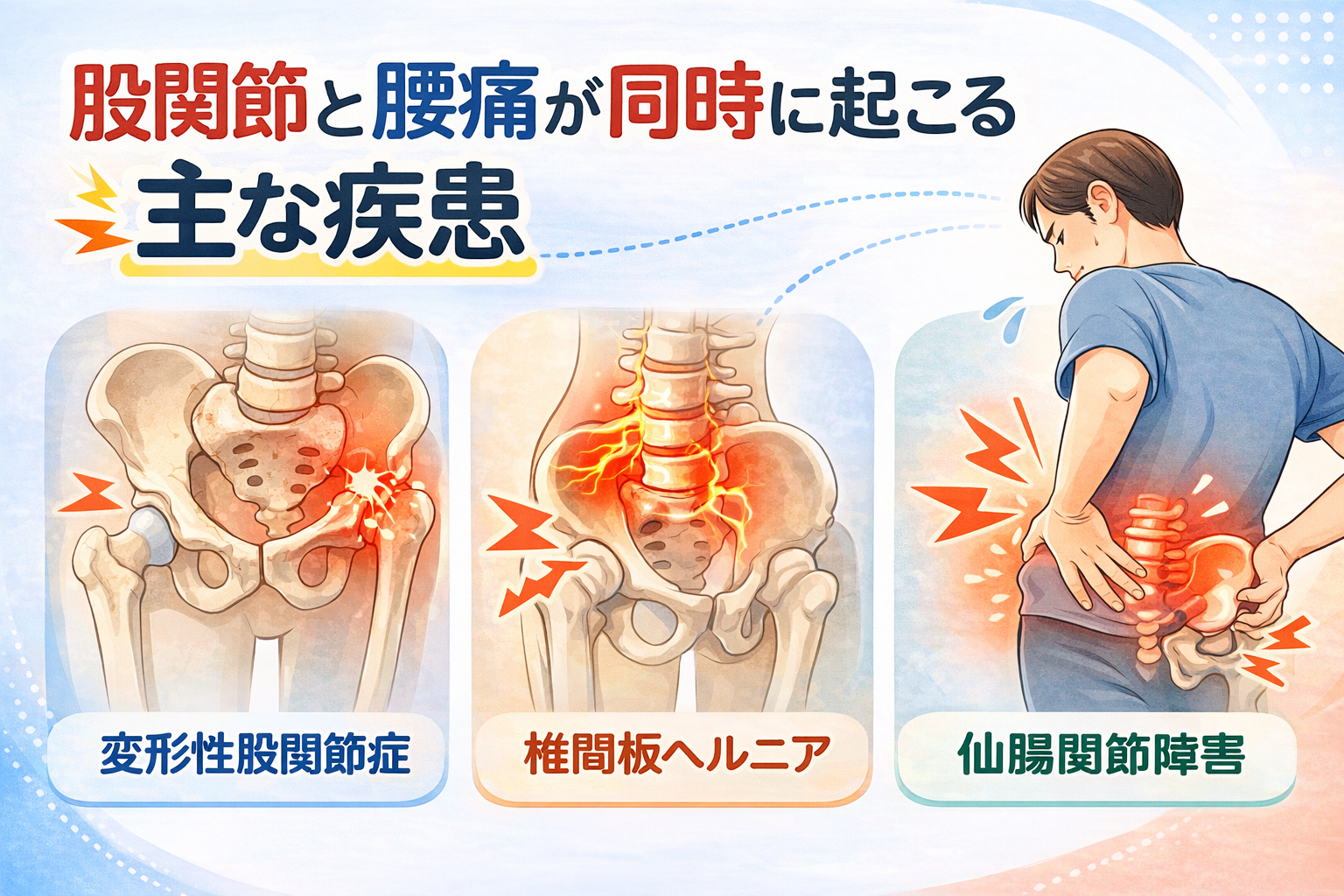 股関節と腰痛が同時に起こる主な疾患