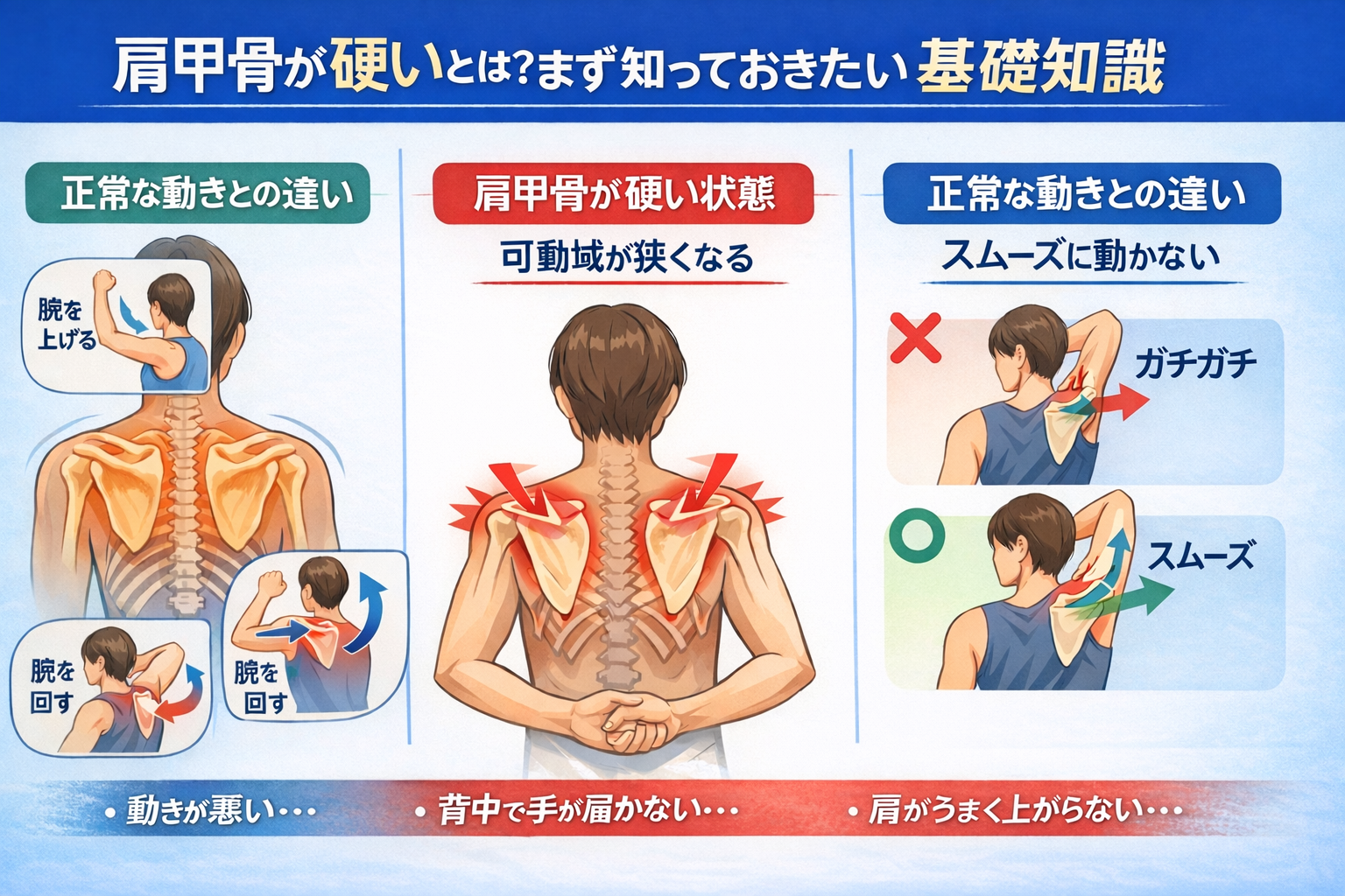 「肩 甲骨 硬い人 特徴って、こりだけなんですか?」