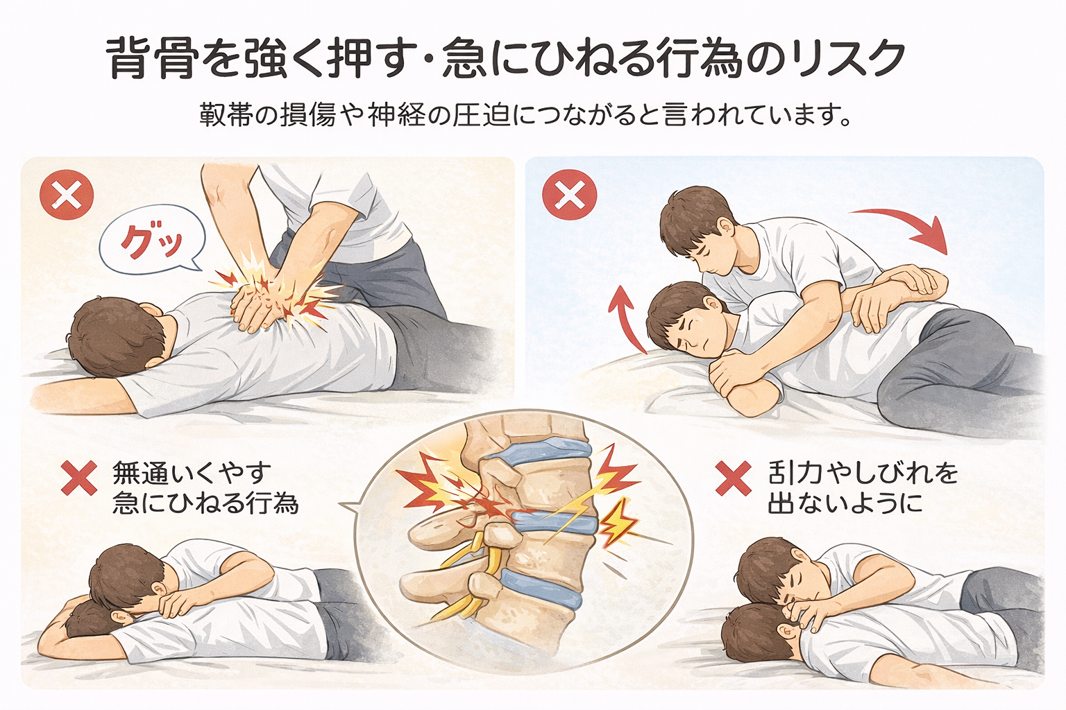 背骨を強く押す・急にひねる行為のリスク