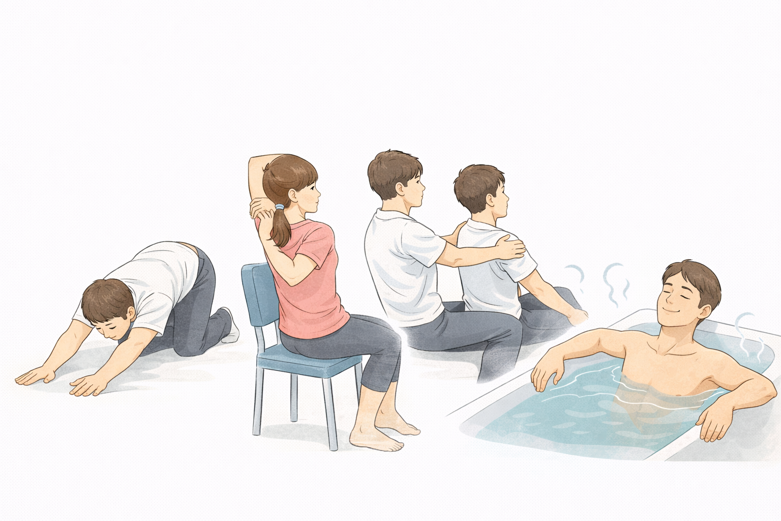 お風呂で体を温める、肩甲骨をゆっくり動かす体操を取り入れるなど、強い刺激を与えないケアが向いていると言われています。短時間でも続けることで、背中の張りを感じにくくなるケースもあるそうです。