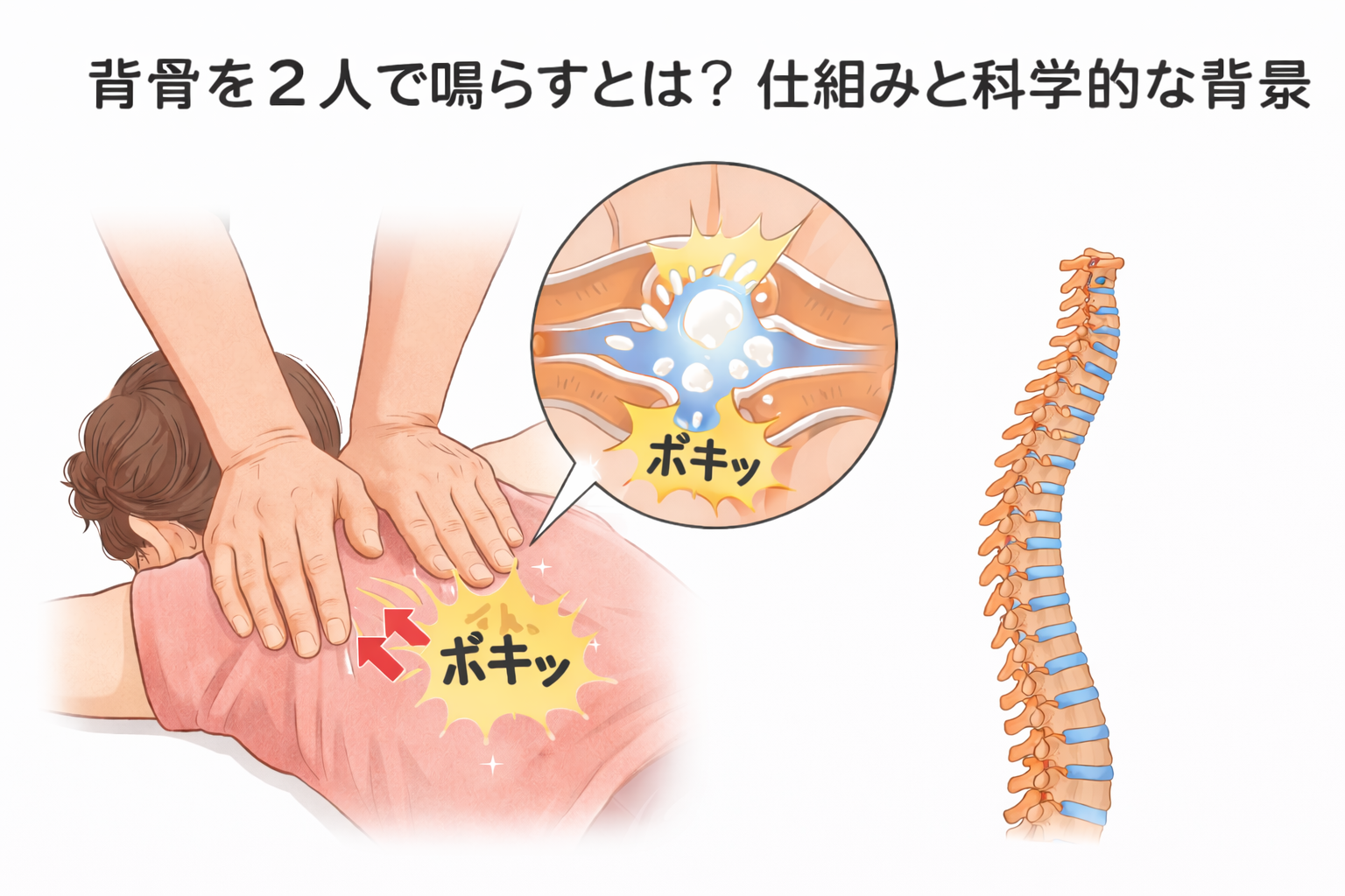 そんな疑問を持つ方は多いと思います。ここでは、背骨が鳴る理由や、なぜ2人で行うケースが多いのかを、できるだけわかりやすく整理していきますね。