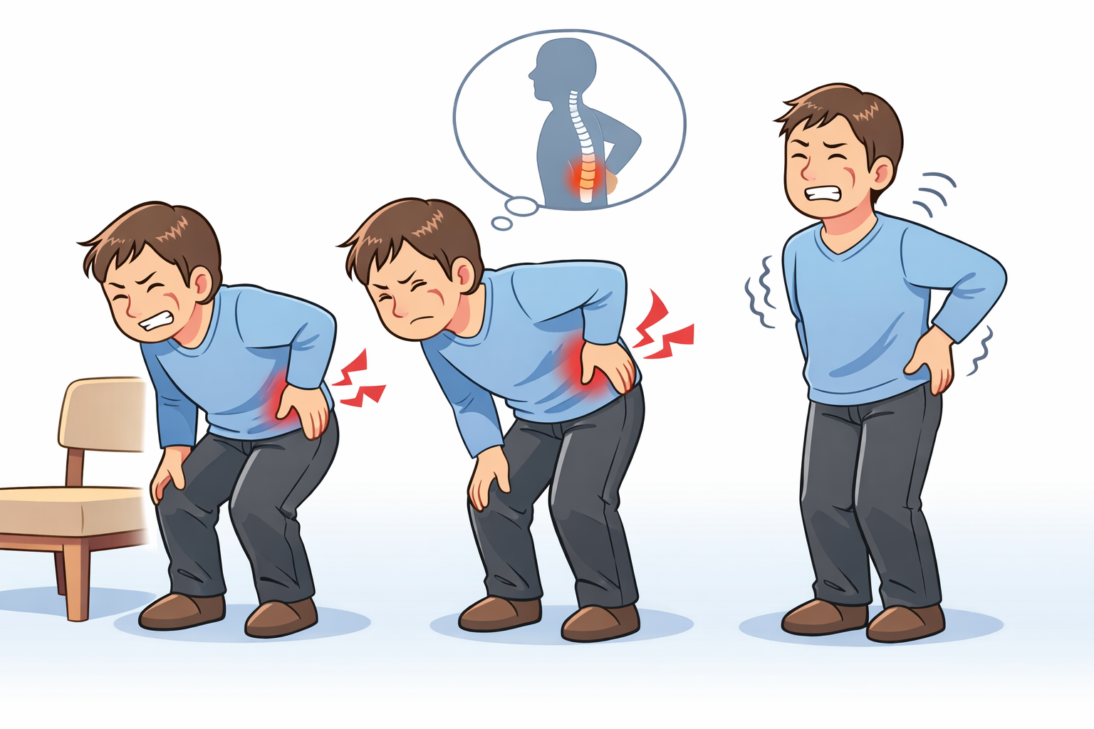 腰痛でまっすぐ立てない状態とは、腰や背中を伸ばそうとしたときに痛みや違和感が出て、自然な立位を保てない状態を指すことが多いようです。