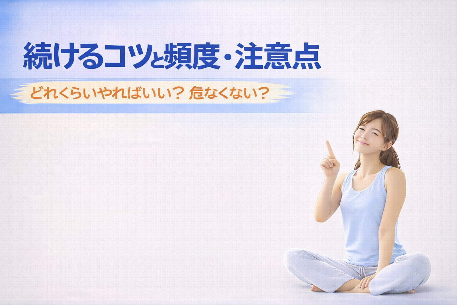 頻度については、1日1回〜数回、短時間でも継続することが紹介されています。長時間まとめて行うより、「毎日少しずつ続ける」ほうが体への負担が少ないと考えられているそうです。朝起きたあとや、夜のリラックスタイムなど、自分の生活リズムに合わせたタイミングを決めると、習慣として続けやすいとも言われています。