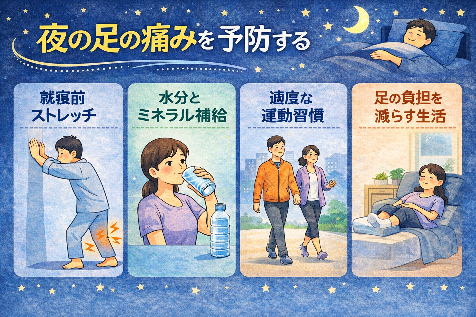 夜の足の痛みを予防する生活習慣