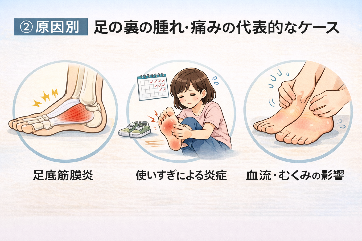 ② 原因別|足の裏の腫れ・痛みの代表的なケース
