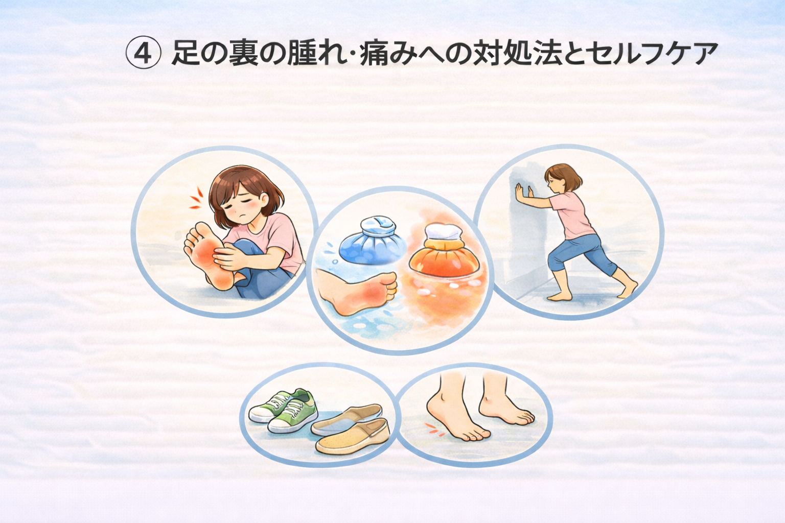 ④ 足の裏の腫れ・痛みへの対処法とセルフケア