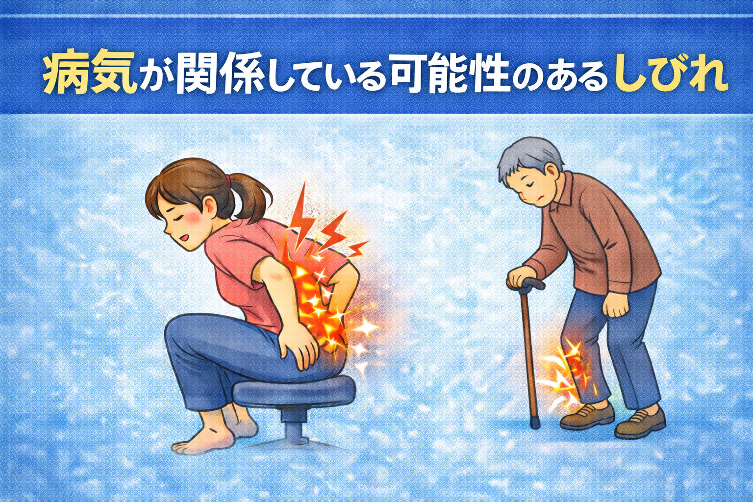 しびれがすぐ改善せず、痛みやだるさを伴う場合は、体からのサインと考えたほうがよいケースもあります。
