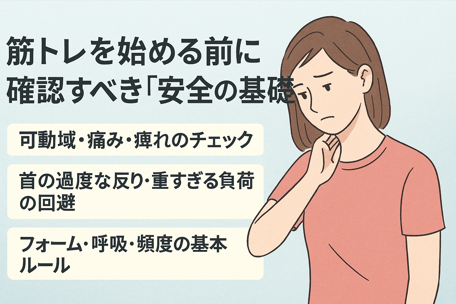 頚椎症の方が筋トレを始めるときは、「避けたほうがよい動き」を知っておくと安心です。