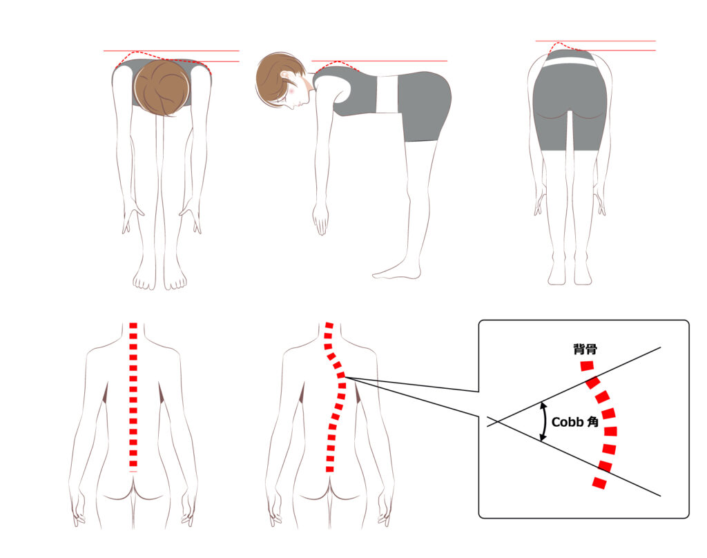 また、上半身裸になって前かがみになり後ろから歪みを見るため、学校健診では診察が難しいという要因もあげられます。