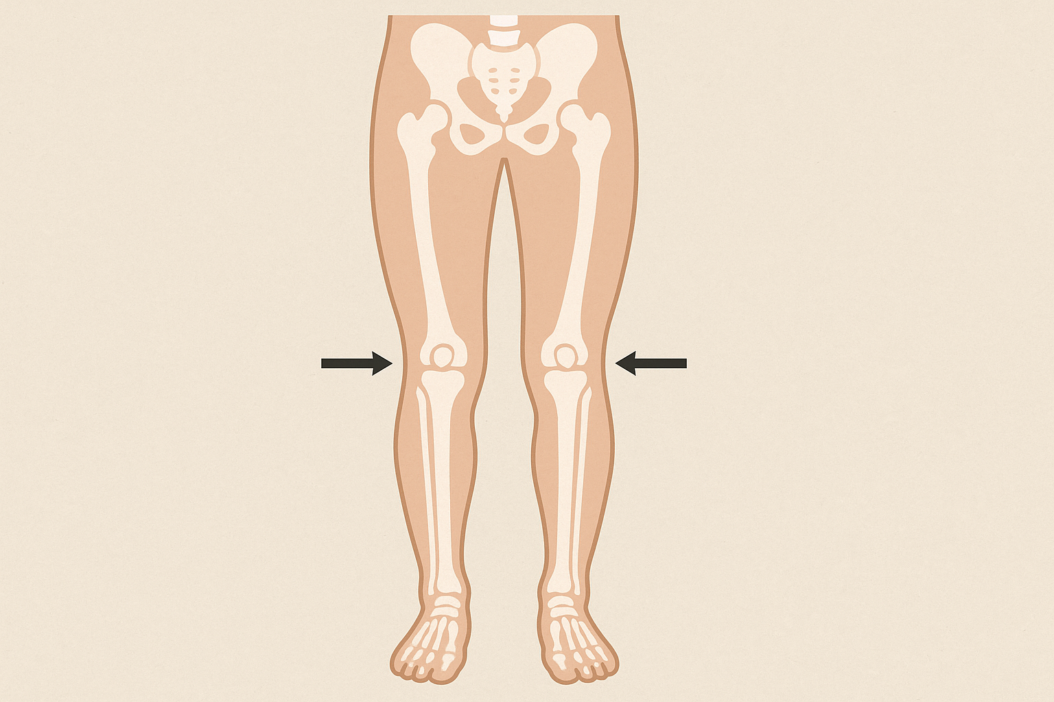 「o脚ってどんな状態なんだろう?」と聞かれることがあります。一般的には、立ったときに膝が近づかず、脚のラインが外側へ開いて見える状態を指すと言われています。参考記事でも、膝と膝の間が空きやすく、脚全体が湾曲して見える傾向があると説明されています(引用元:https://kumanomi-seikotu.com/blog/6275/)。